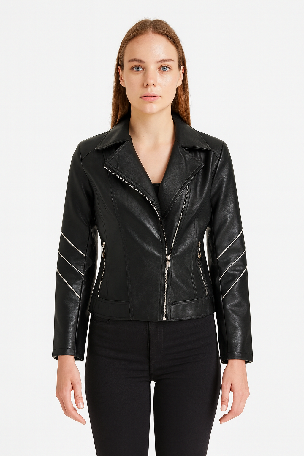 La giacca in pelle Enerland offre un design che si distingue per l'alta qualità del materiale in pelle, riflettendo eleganza e grazia moderne.