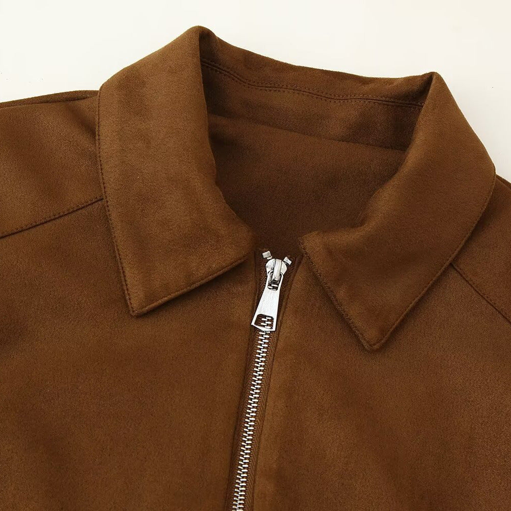 Questa giacca marrone con zip unisce stile classico e moderno. Il suo design minimalista offre un'eleganza senza tempo, mentre i dettagli in metallo con cerniera aggiungono un tocco deciso e dinamico. È versatile, ideale per l'uso quotidiano e per il lavoro.