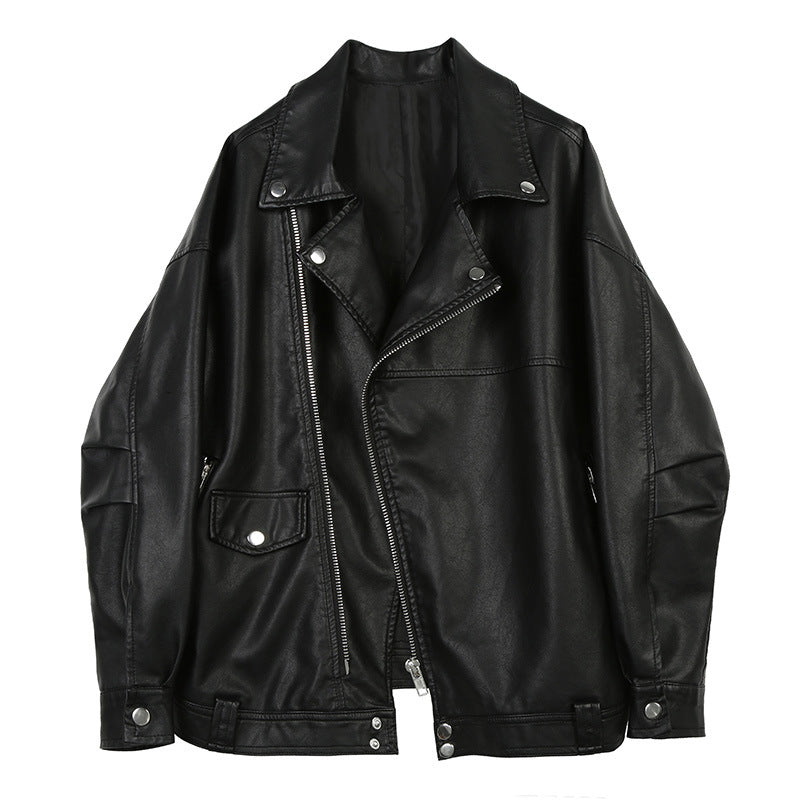 I dettagli con bottoni in metallo sulle spalle e sui polsini aggiungono un tocco biker.